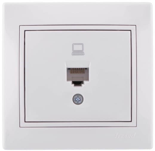 - Тип розетки: Компьютерная розетка, предназначенная для подключения сетевых устройств к сети передачи данных.