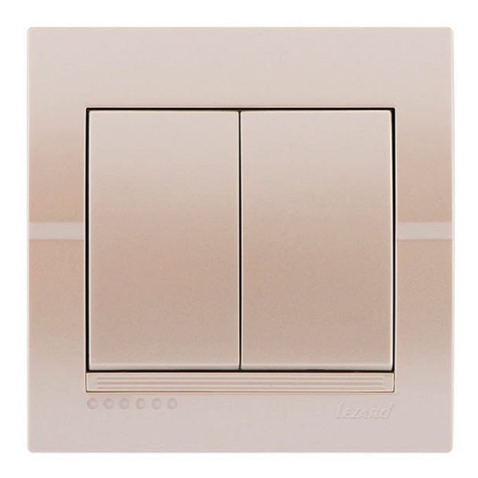 Выключатель DERIY двойной жемчужно-белый металлик 702-3030-101