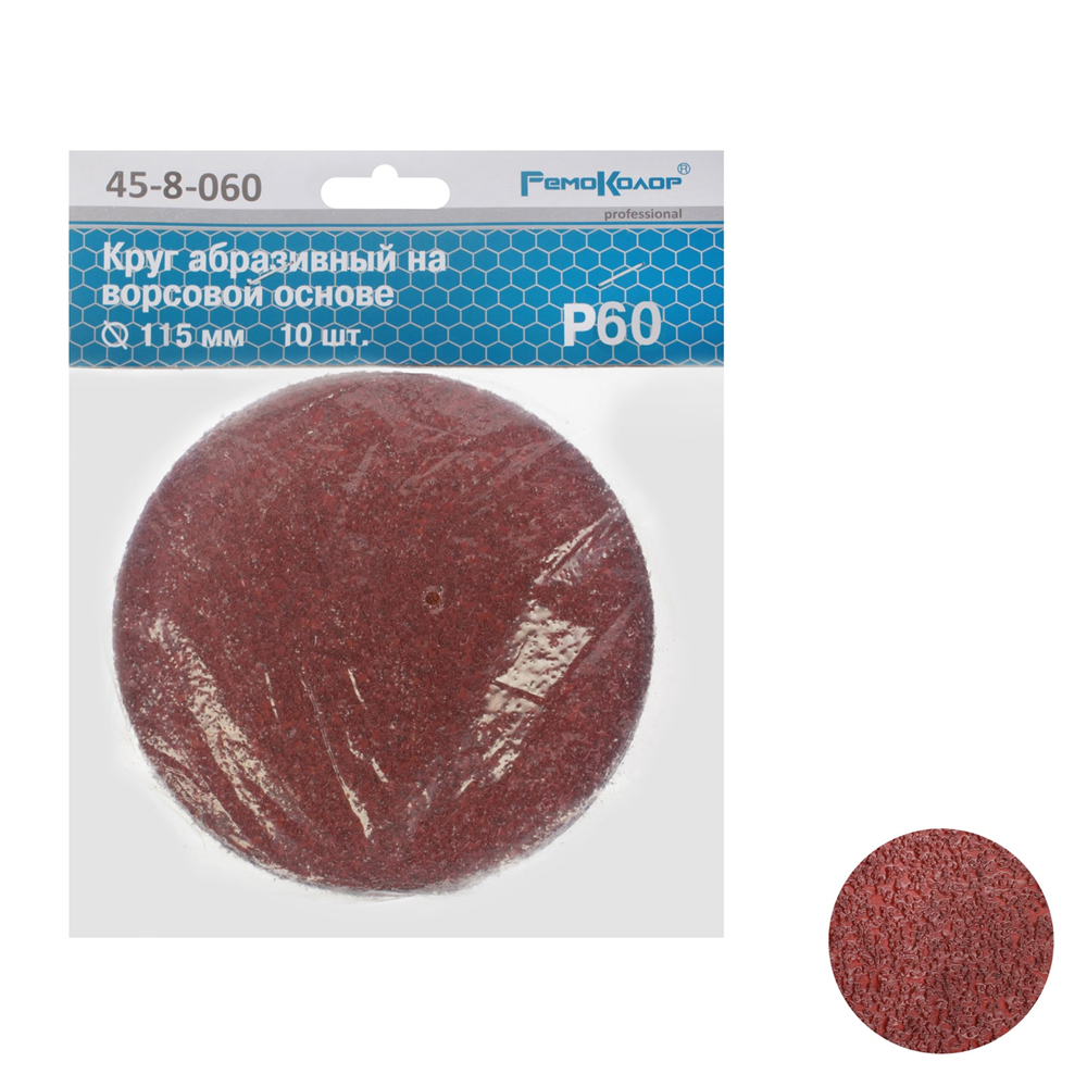Круг абразивный ОРМИС на ворсовой основе под липучку Р60 115мм Hardax 45-8-060