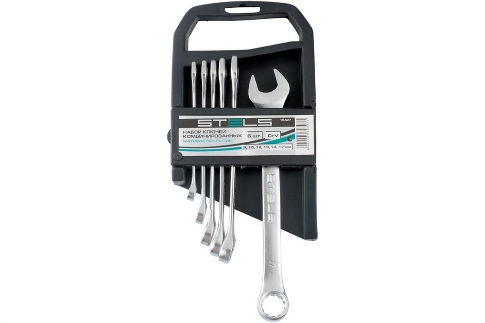 Набор ключей STELS комбинированных 8-17мм, 6шт, CrV, матовый хром 15427