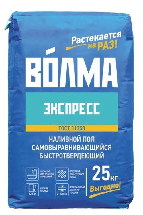 ВОЛМА Нивелир Экспресс — сухая смесь на основе смешанного вяжущего, минеральных наполнителей и модифицирующих добавок.