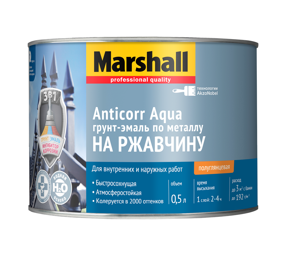 Грунт-эмаль MARSHALL ANTICORR AQUA полуглянцевая база C 0,5л 5255647