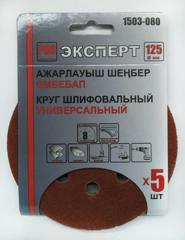 Круг ЭКСПЕРТ шлифовальный на велкро основе, диаметр 125мм (5шт/уп) Р80 арт.1503-080