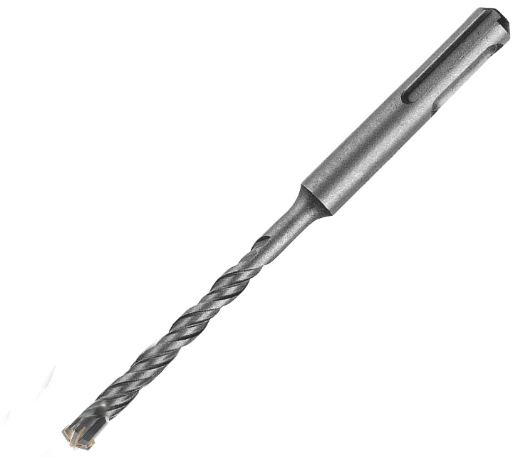 Бур по бетону используется для работы с прочными основаниями. Оснащён 4 резцами из твёрдого сплава, что обеспечивает долговечность и надёжность. Стальная основа повышает прочность инструмента, а хвостовик SDS-Plus делает крепление удобным и стабильным. Такой вариант подойдёт для ремонтных и строительных работ.