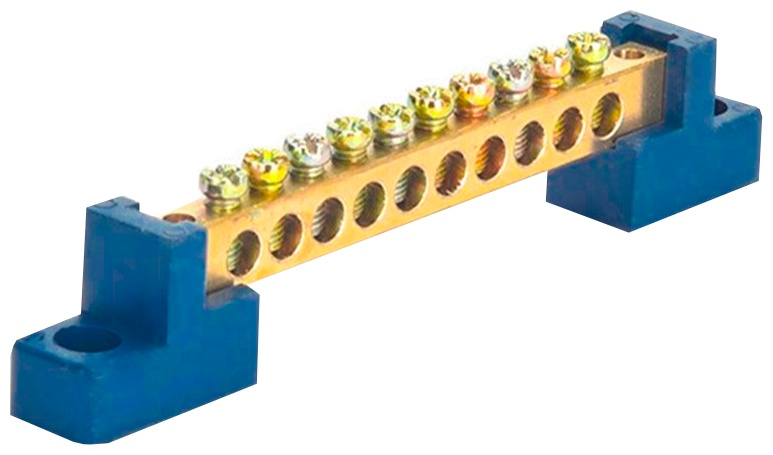 Шина SIRIUS 0 N 8*12мм, 8 отверстия, латунь, 2 синих угловых изолятора