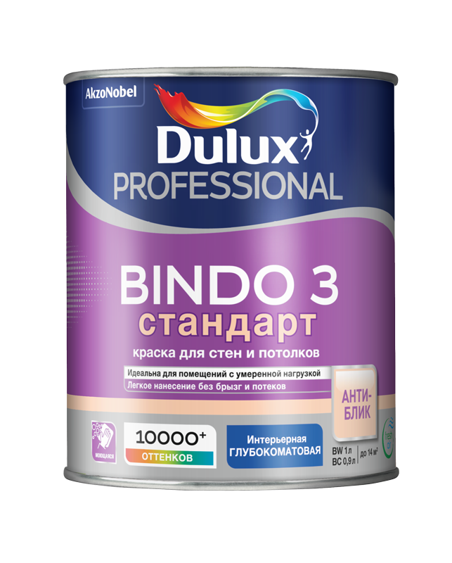 Краска водоэмульсионная Dulux BINDO 3 проф. глубокомат. BC 0,9л 5309369