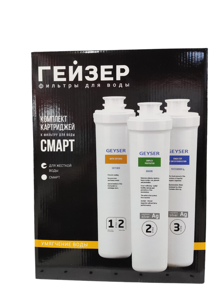 В набор картриджей Гейзер Смарт для жесткой воды входят: