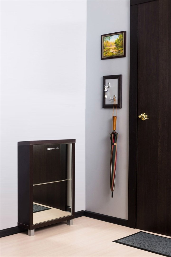 Шкаф для обуви Айрон Люкс 2-х секционный (Венге/Зеркало)