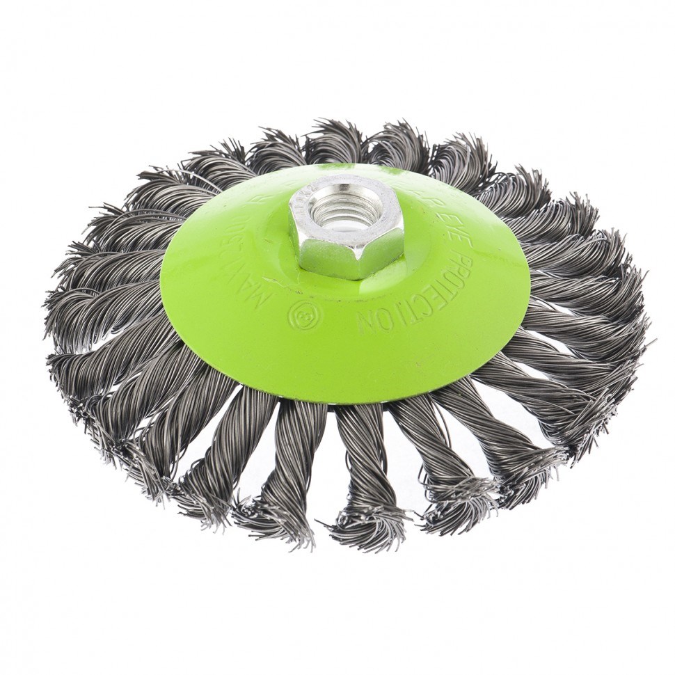 Щетка СИБРТЕХ для УШМ 125мм, М14 тарелка крученая металлическая проволока 0,5мм 746117