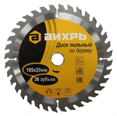 Диск ВИХРЬ пильный по дереву 185х20 мм,36 зубьев+кольцо 16/20 73/10/4/3