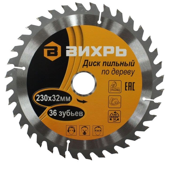 Диск ВИХРЬ пильный по дереву 230х32 мм,36 зубьев+кольцо 30/32 73/10/4/8
