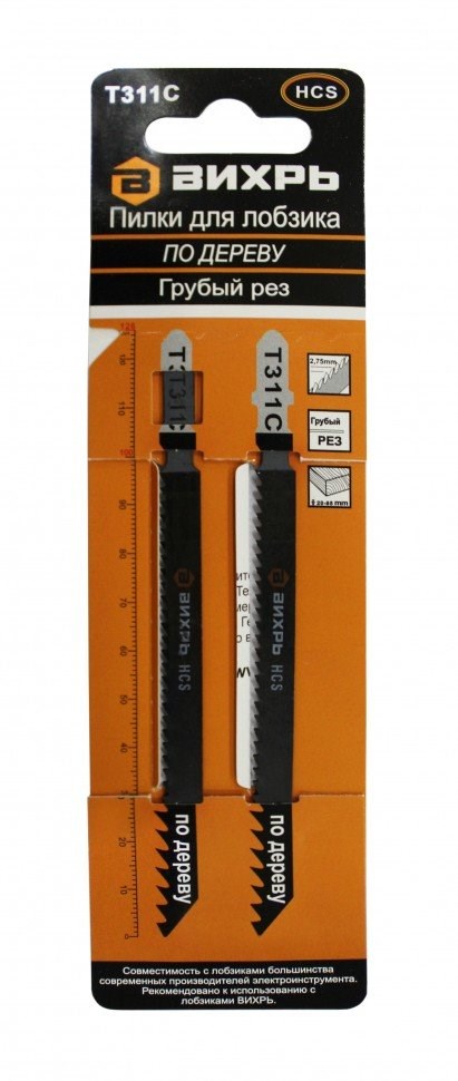 Пилки ВИХРЬ для лобзика Т311C по дереву,грубый рез 126х100мм (2 шт) 73/10/5/6