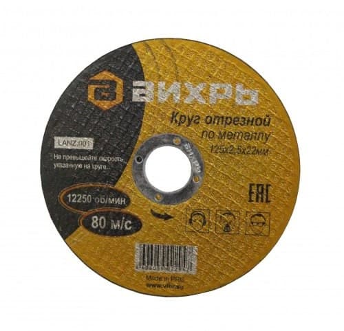 Круг отрезной ВИХРЬ по металлу 125х2,5х22 мм 73/1/3/31