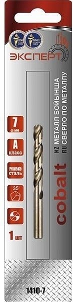 Сверло ЭКСПЕРТ по металлу кобальт цилиндрический хвостовик, диаметр 7мм (1шт/уп) 1410-7