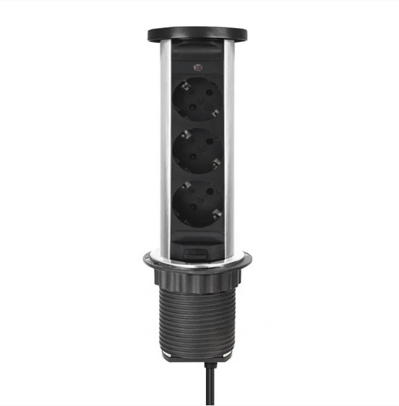 Блок Shelbi выдвижной настольный розеточный на 3 розетки 200B, IP44, серебро STV-3S-IP44-3