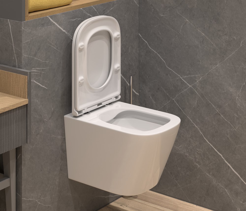 Унитаз ГРАНДФАЯНС подвесной безободковый, с крышкой дюропласт микролифт К 53
