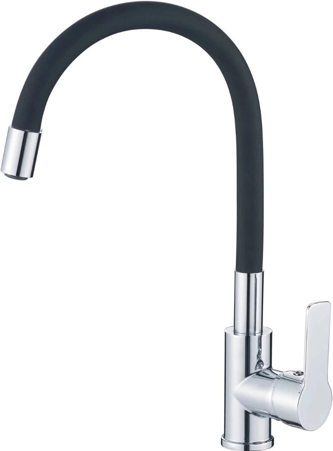 Смеситель HAIBA комбинированный силиконовый с гибким изливом, черный/хром латунь HB70112-7