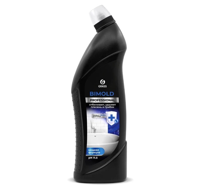 Чистящее концентрированное средство с дезинфицирующим эффектом для удаления плесени, грибка, мха, водорослей, мыльных и других глубоко въевшихся органических загрязнений Грасс Bimold 1000мл 125443. Применяется для очистки внутренних и наружных поверхностей зданий, сооружений, душевых кабин, ванных комнат, полов, стен и т.д эффективно очищает деревянные поверхности в банях и саунах, удаляет плесень и запахи в подвальных помещениях.Способ применения: 1. Удаление плесени, грибка, очистка кафеля и душевых кабин: концентрат разбавить 1:1 и нанести на поверхность с помощью распылителя. Выдержать на поверхности 5-15 минут протереть губкой или щеткой, удалить остатки загрязнений с помощью микрофибры. 2. Отбеливание поверхностей, антибактериальная и профилактическая обработка: концентрат разбавляется 1:10-1:20 или 50-100мл на 1 литр воды. Для отбеливания стыков и швов допустимо применение в неразбавленном виде.