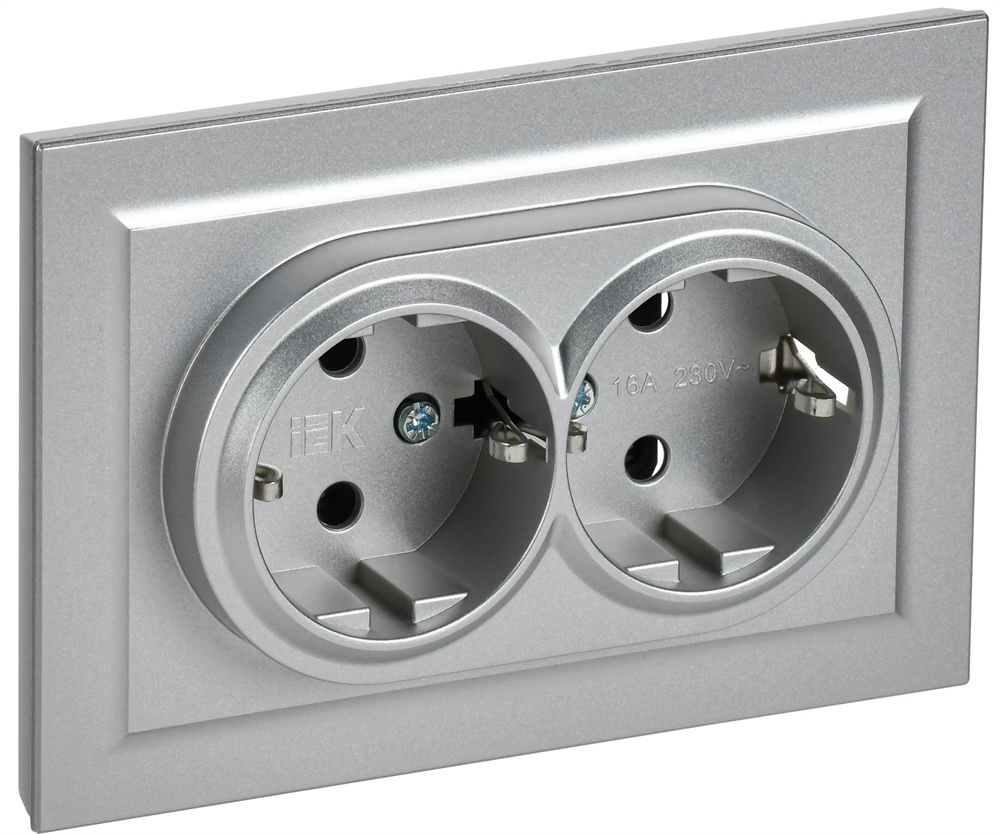 Розетка BRITE двойная с з/к, без з/ш 16А в сборе, алюминий BR-R21-16-K47-F