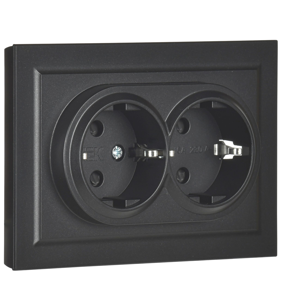 Розетка BRITE двойная с з/к, без з/ш 16А в сборе, черный BR-R21-16-K02-F