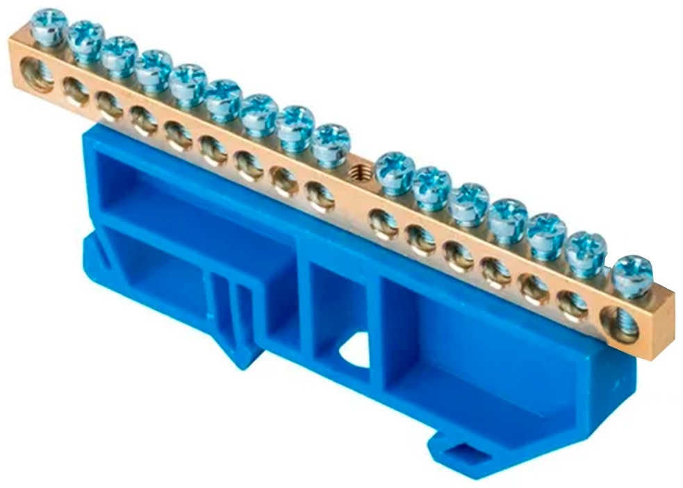 Шина SIRIUS 0 N 8*12мм, 16 отверстия, латунь, 2 синих угловых изолятора