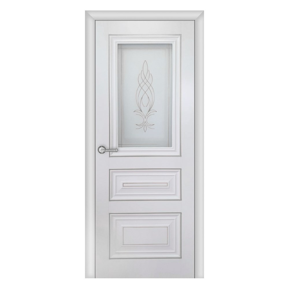 Полотно ЛЕСКОМ дверное Экшпон Имидж-2 эмалит белый/серебро, витражное стекло 60
