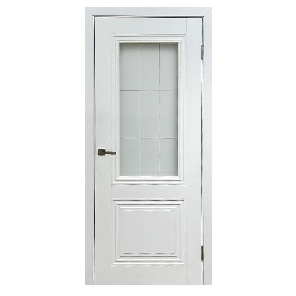 Полотно ЛЕСКОМ дверное Экшпон S-2 эмалит белый, стекло гравировка решетка 80