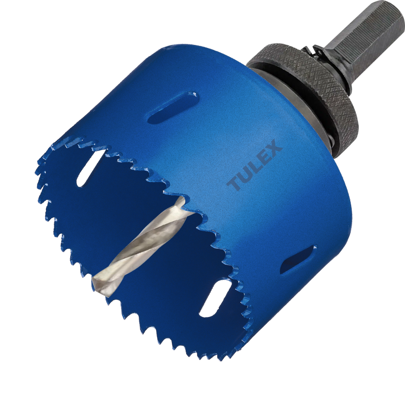 Коронка TULEX биметаллическая, шестигранный хвостовик,с центрирующим сверлом,в сборе 76мм 601013-076