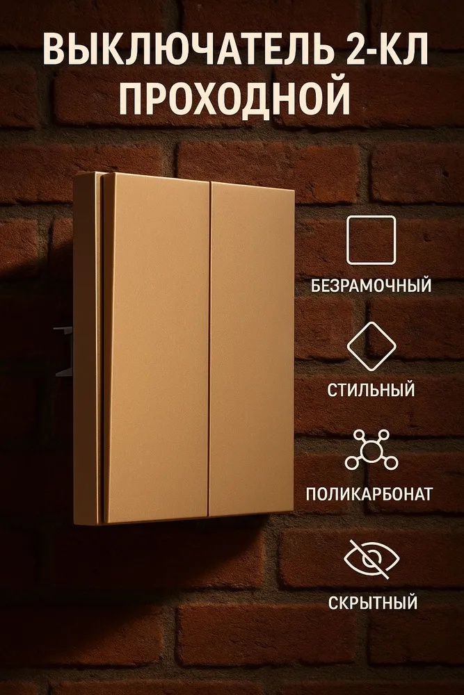 Выключатель NEXON 2-кл, проходной, цвет матовое золото 80-B3-EK22KZ