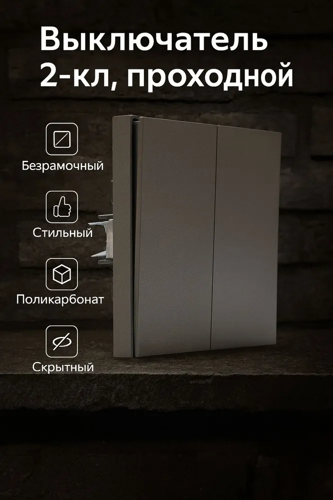 Выключатель NEXON 2-кл, проходной, платина 80-B4-EK22KZ