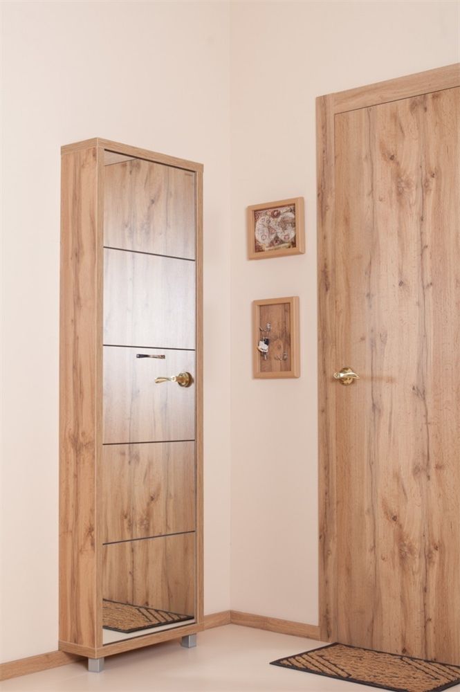 Шкаф для обуви Айрон Люкс 5-ти секционный (дуб Вотан/зеркало)